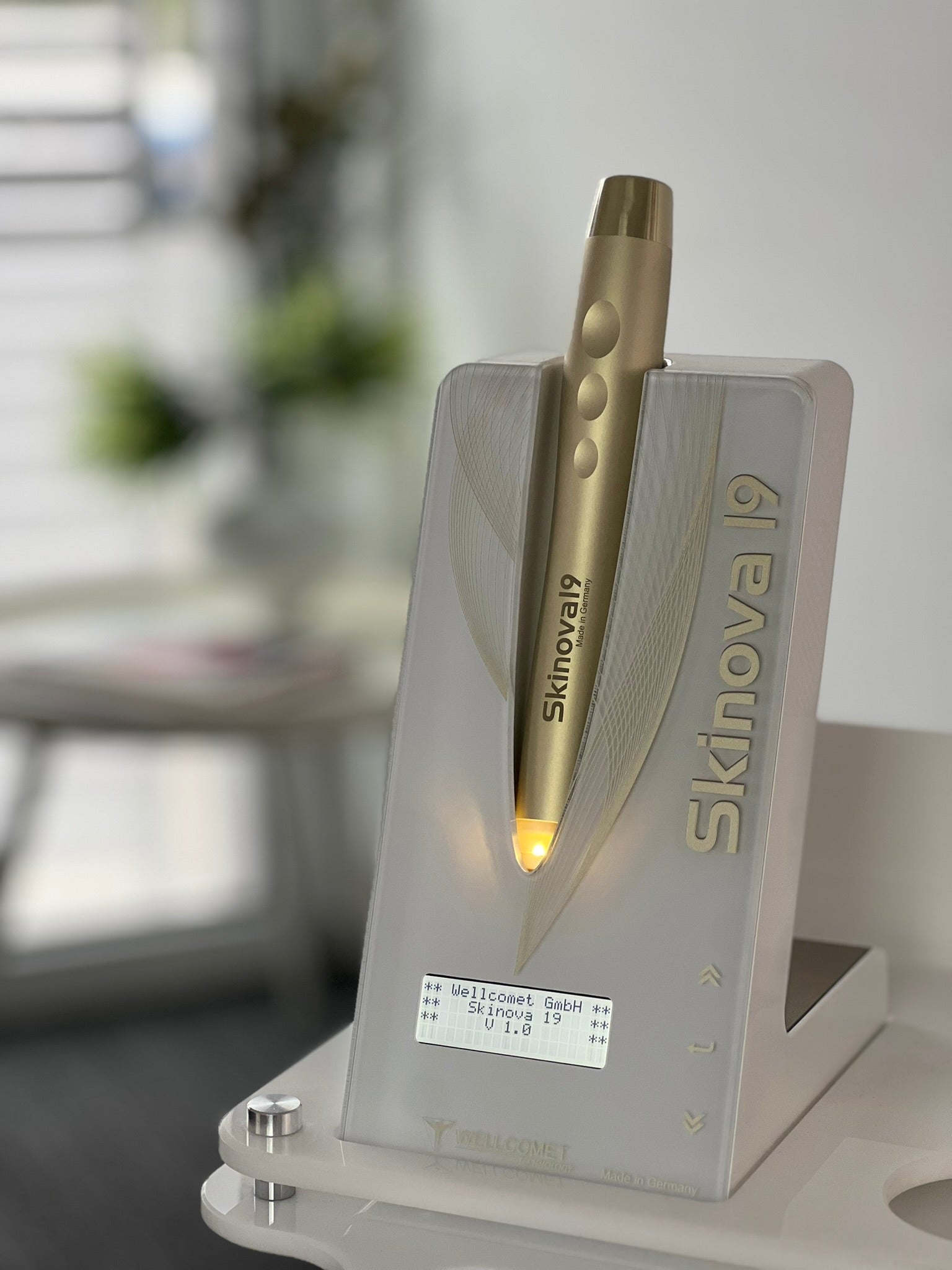 Unser beliebtes Skinova® wurde in der Skinova® 19 Version deutlich verbessert, um noch bessere und schnellere Ergebnisse sowie mehr Sicherheit zu bieten. Dank der neuen Programmauswahl und den vielseitigen Einsatzmöglichkeiten ermöglicht Skinova® 19 maßgeschneiderte Behandlungen für unterschiedliche Hautbedürfnisse – bequem in den eigenen vier Wänden.