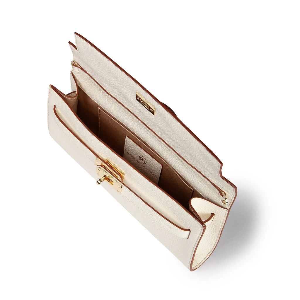 Jade cluch leather bag with retractable handle closure and detachable and adjustable shoulder strap