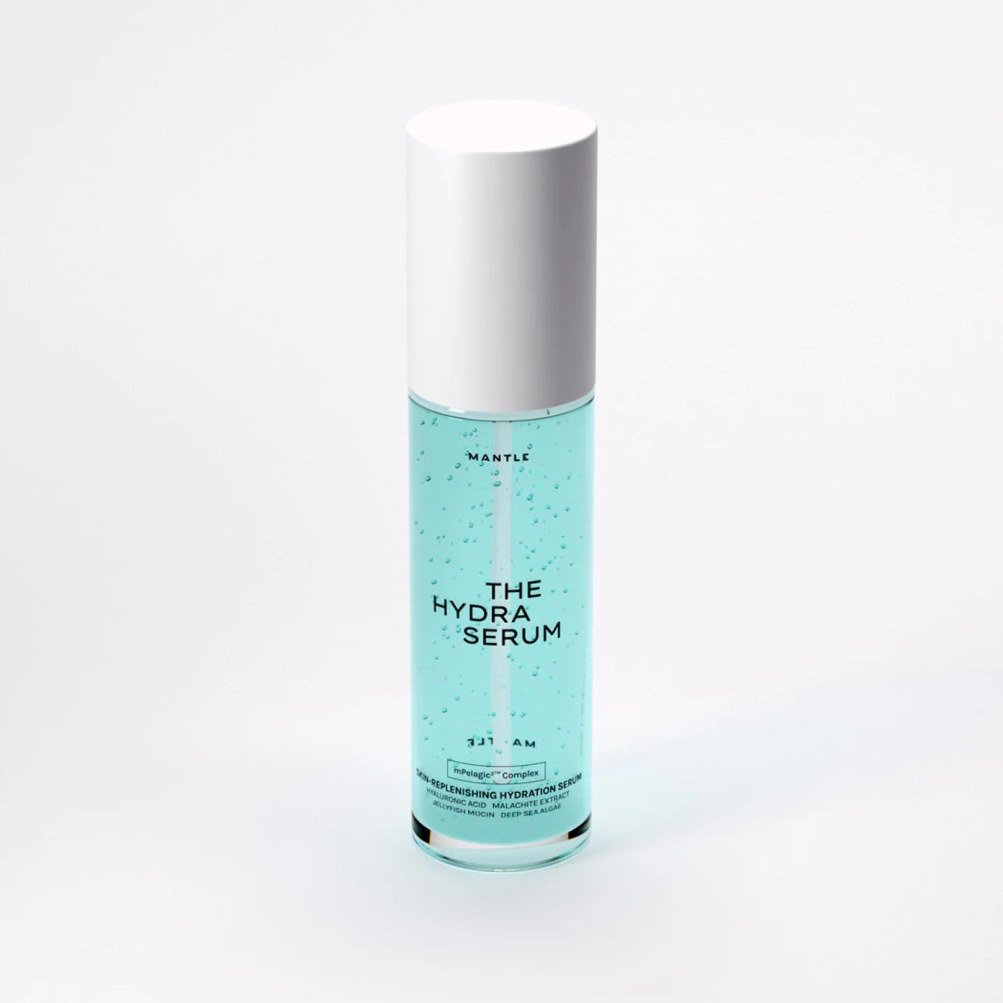 Step aside snail mucin, there’s a new hero in town. The Hydra Serum features jellyfish mucin, a deeply hydrating + collagen-boosting ingredient. With its ability to bind water in the skin 3x more effectively than hyaluronic acid, jellyfish mucin takes hydration to the next level. This formula which features our trademarked mPelagic2TM Complex (jellyfish mucin + deep-sea algae), hyaluronic acid, panthenol and blue malachite extract, bathes cells in deep hydration, increases cellular resilience against environmental stressors and strengthens the skin barrier. Skin is left replenished, plump and dewy.
